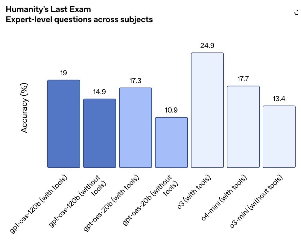 Here’s how OpenAI says its new open weights models stack up against its proprietary models. – Click to enlarge