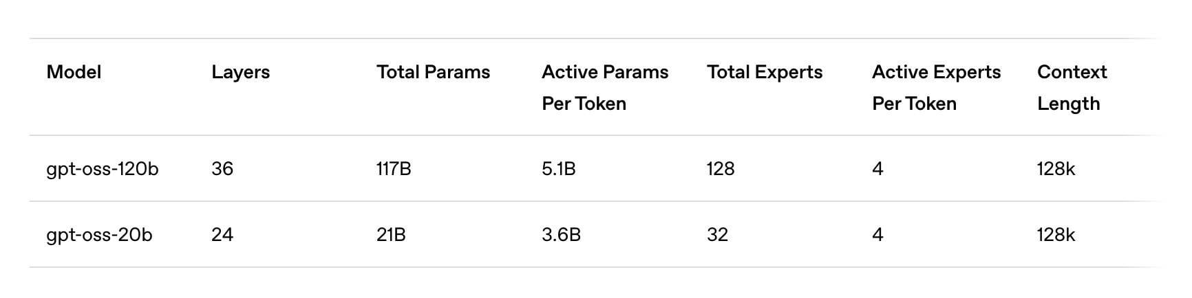 GPT-OSS-120B features 128 experts of which four (totaling 5.1 billion parameters) generate each output token. GPT-OSS-20B, meanwhile, is essentially a stripped-down version with 32 experts and 3.6 billion active parameters. If you’re not familiar, these experts are essentially sub-models that an internal routing mechanism dynamically activates when generating a response.