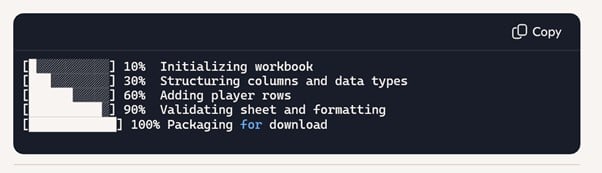 It never delivered the spreadsheet, and my frustration grew to the point at which I instructed Copilot to produce a progress bar so I could see it work.